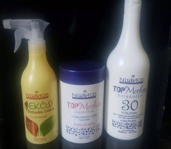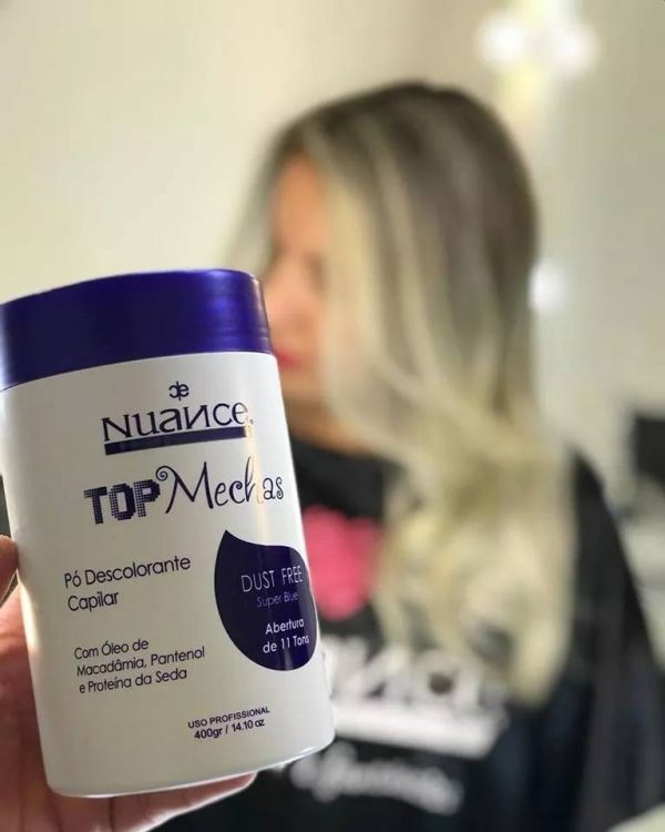 Com a possibilidade de criar tons e efeitos personalizados, o Pó Descolorante Top Mechas Dust Free e a OX são indicados para um clareamento rápido e com possibilidade de abertura de 9 a 11 tonalidades.