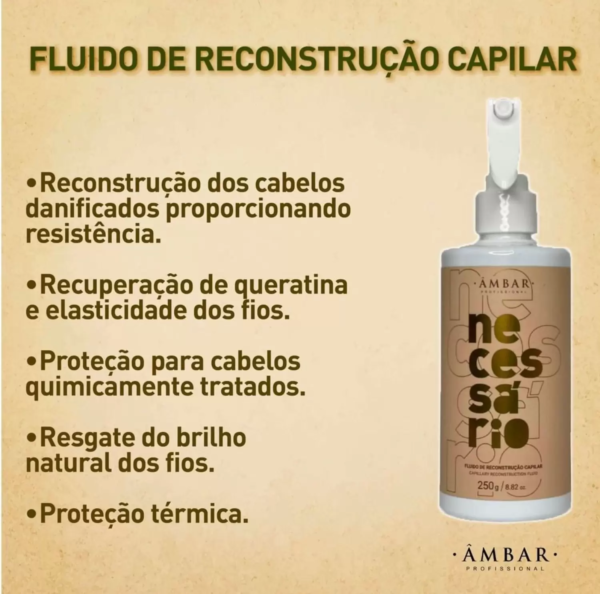 O NECESSÁRIO é um FLUIDO de tratamento intensivo que promete recuperar os cabelos danificados, protege cabelos quimicamente tratados, resgata o brilho dos fios, reconstrói cabelos desvitalizados e quebradiços.