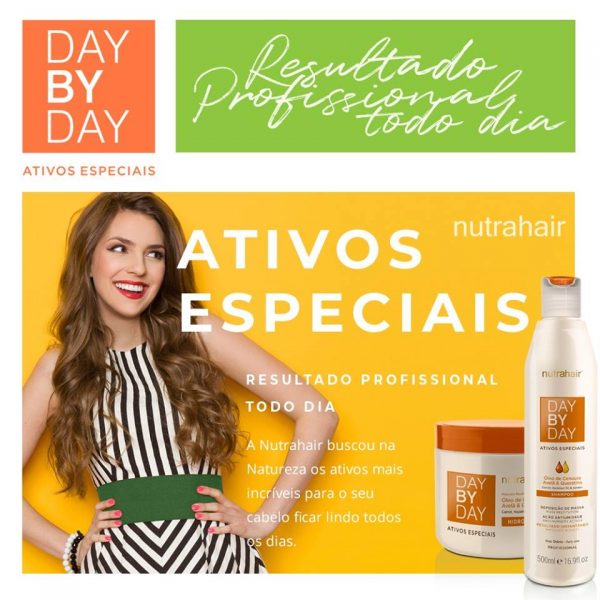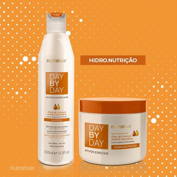 A linha Day By Day é um tratamento profissional para uso diário, que proporciona restauração intensiva com resultado instantâneo. Os Óleos de Cenoura e Avelã formam um complexo lipídico para reposição diária de nutrientes, enquanto o Colágeno auxilia no fortalecimento dos fios.