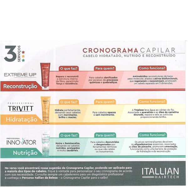 O Kit de Cronograma Capilar da Itallian Hairtech traz o melhor em Hidratação, Nutrição e Reconstrução para potencializar ainda mais o seu ritual de tratamento.