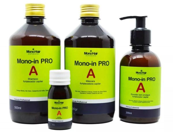 O Mono-in Pro A é um fortalecer capilar para cabelos tratados por instrumento térmico ( secadores , pranchas e baby Liss) e químicas pesadas. Ideal para fios fragilizados e com dificuldades de crescimento.