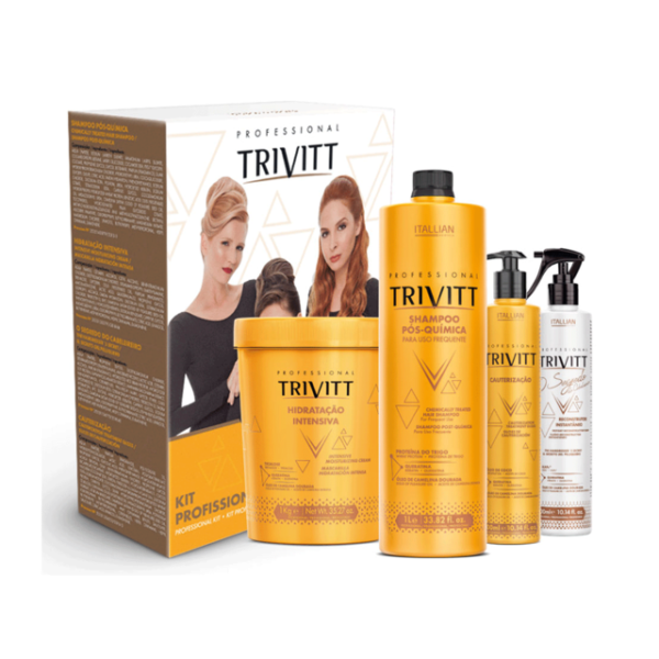 Itallian Trivitt Kit Profissional é ideal para o tratamento de cabelos quimicamente tratados por proporcionar hidratação profunda, cauterização dos fios e a reconstrução das áreas danificadas.