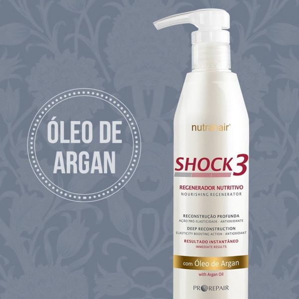 O Regenerador Nutritivo Shock3 fortalece e regenera os fios, promove ação antiaging e devolve aos cabelos sua flexibilidade natural. 120ml