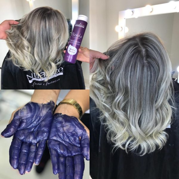 Elaborado com Pigmentos ácidos e Cinza conferem maior emoliência aos fios loiros.