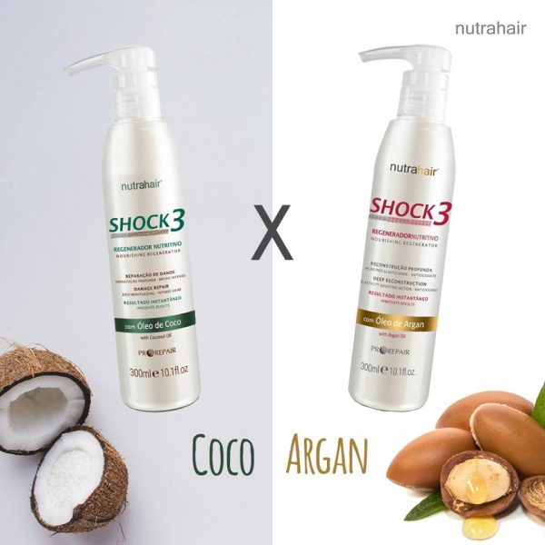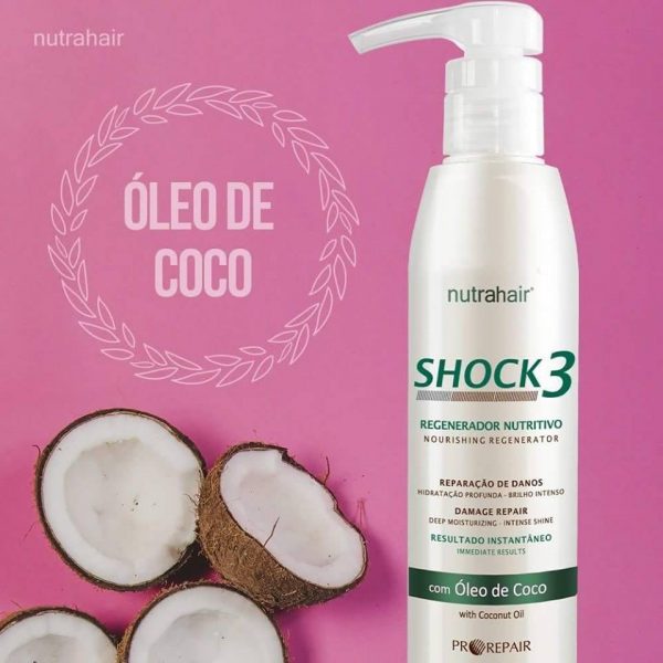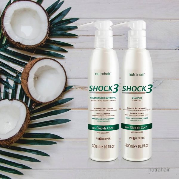A linha Shock3, rica em antioxidantes naturais, nutre profundamente a fibra capilar em apenas 3 minutos, reconstituindo sua estrutura e proporcionando brilho intenso a todos os tipos de cabelo. O Óleo de Coco, fonte de ácidos graxos, revigora e hidrata os fios, conferindo efeito reparador.