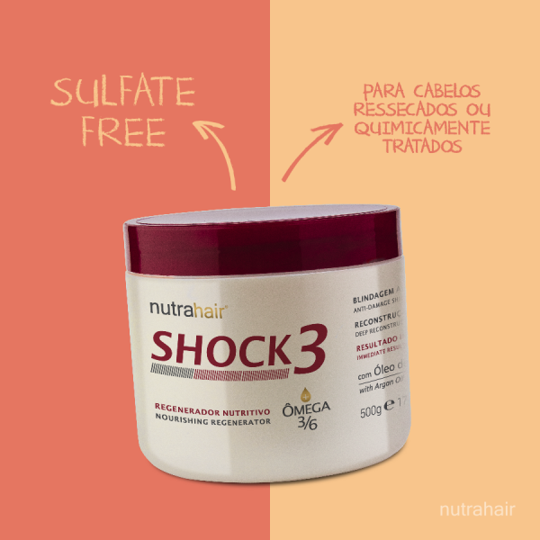 O Regenerador Nutritivo Shock3 Ômega fortalece e regenera os fios danificados e ainda confere efeito Blindagem Anti-danos. Os Ômegas 3 e 6 são ativos de fonte vegetal que fornecem nutrientes essenciais para restaurar a elasticidade dos fios extra ressecados ou quimicamente tratados, ajudando a preservar a bio-proteção natural dos cabelos.